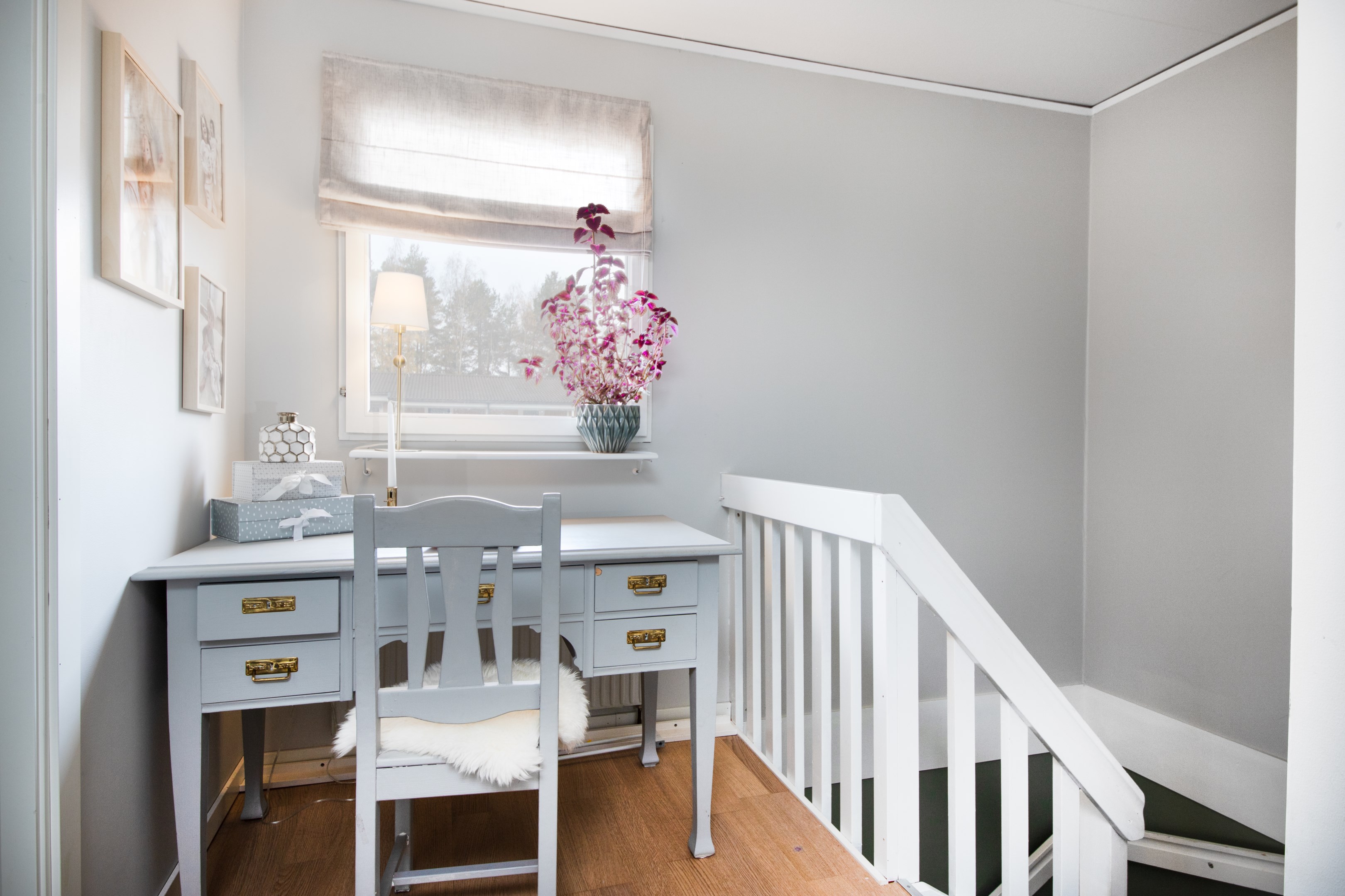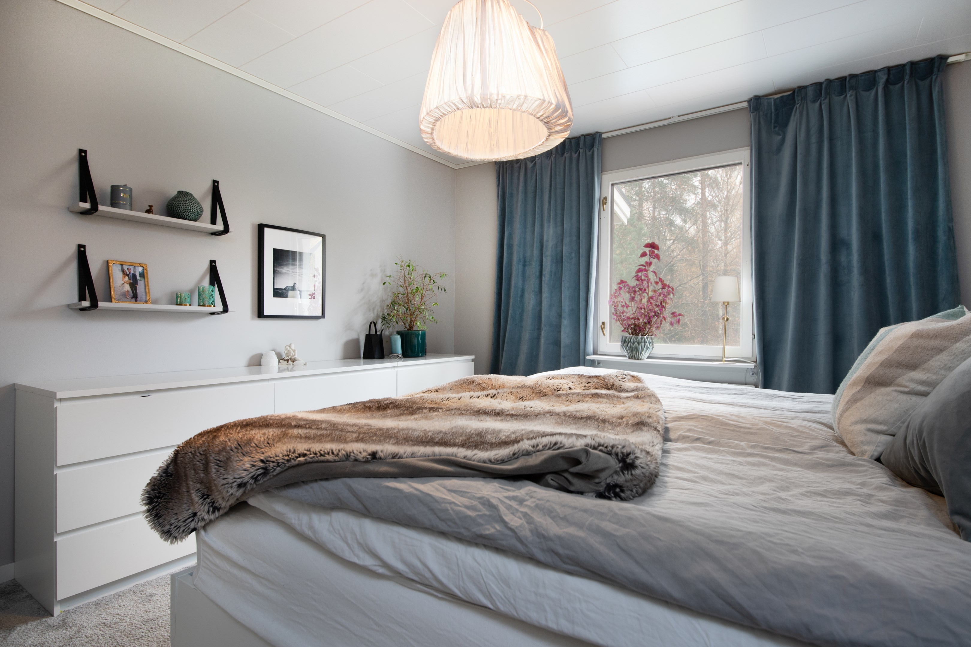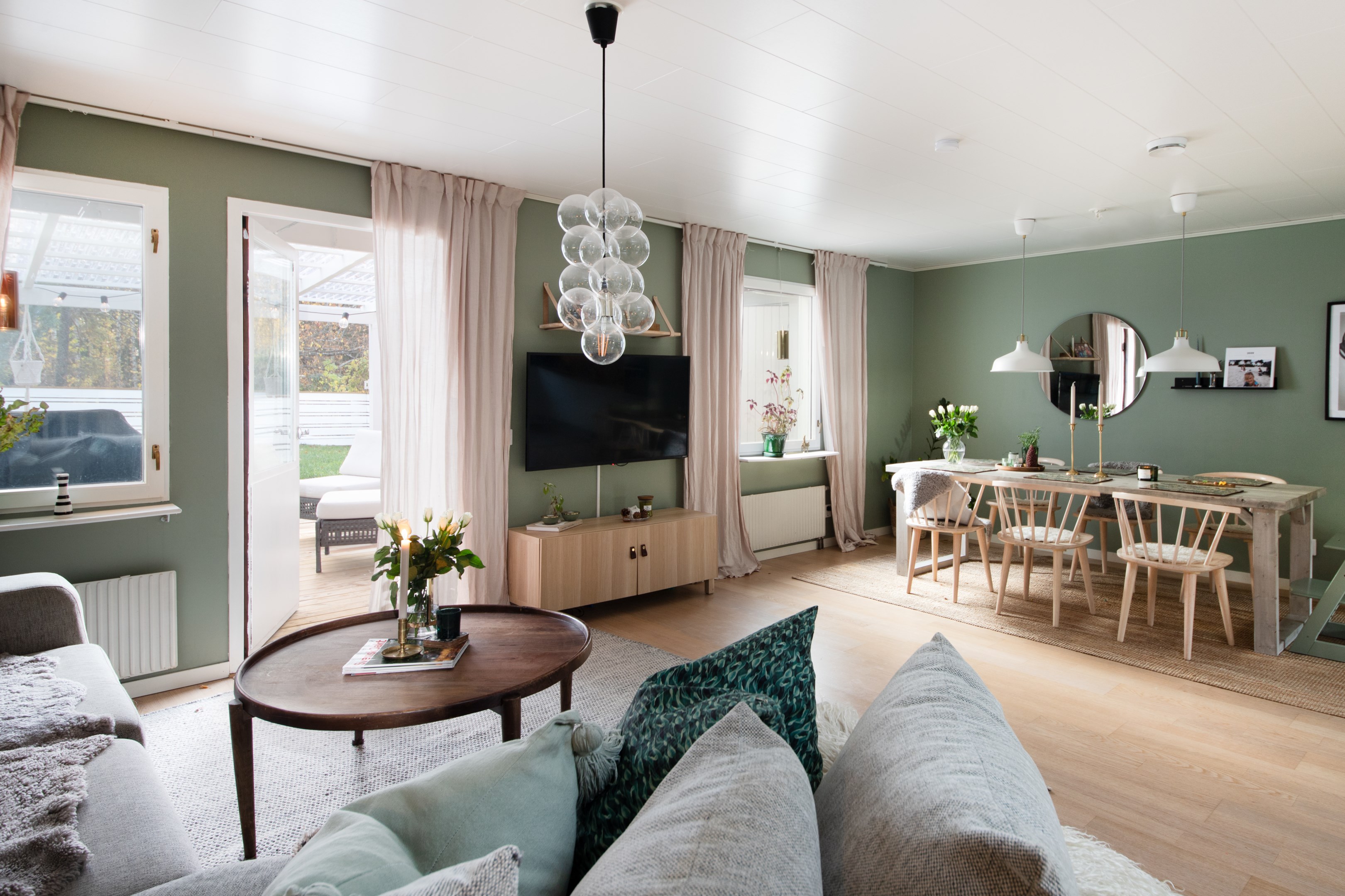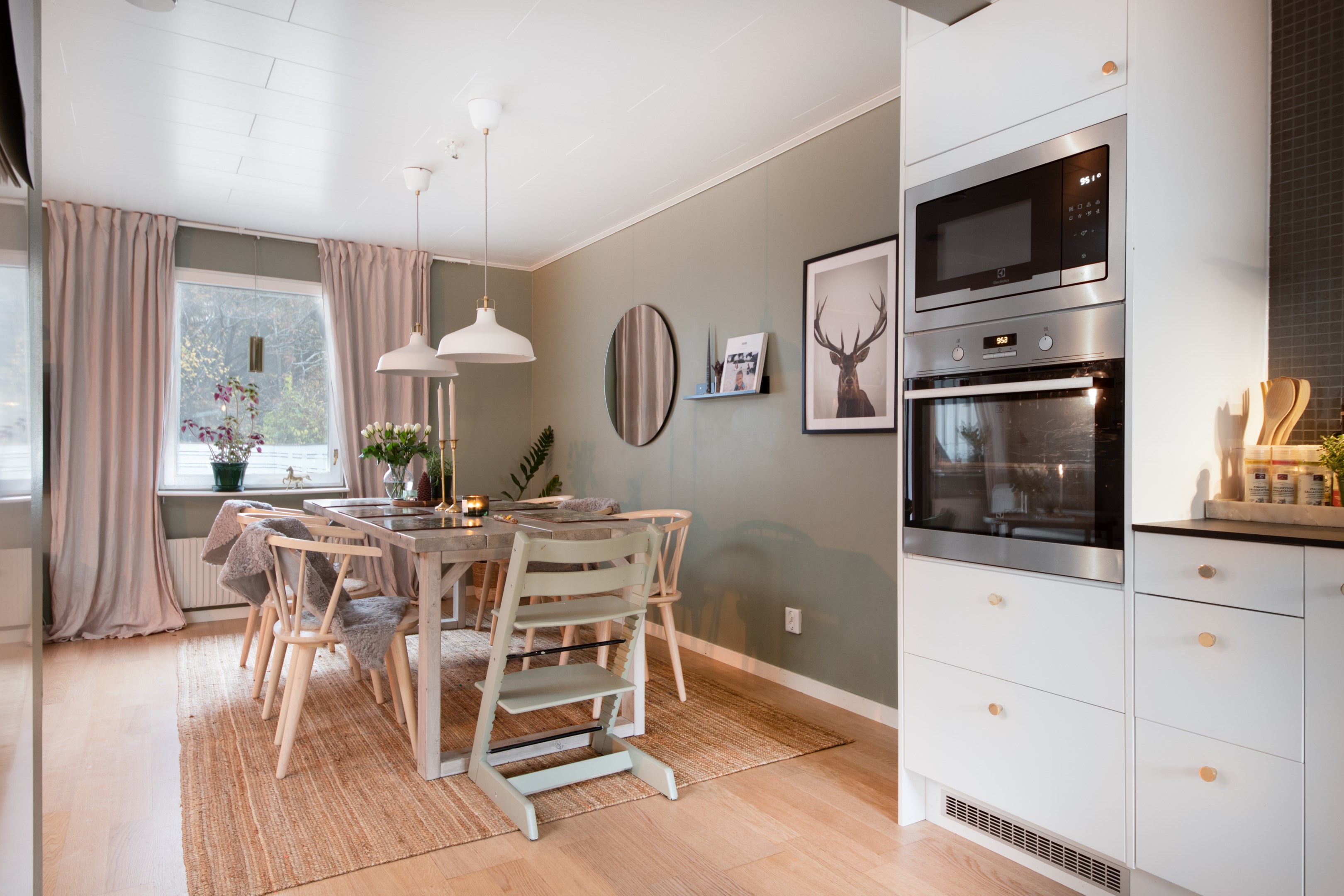 ENTRÉPLAN Entré in i hall med gott om plats för avhängning av ytterkläder. Här råder gott ljusinsläpp med både sidofönster och fönster i ytterdörren. Snyggt och praktiskt vinylgolv och tapetserade väggar. Klädkammare/förråd intill. I anslutning till hallen finns också den rymliga tvättstugan med groventré som är perfekt att använda som vardagsentré. Även här råder ett gott ljusinsläpp med både fönster vid arbetsbänken/tvätthon samt även fönster i ytterdörren. Här finns gott om arbetsytor och förvaringsmöjligheter. Ny kombinerad tvätt och torktumlare, det finns även en separat torktumlare. Värmepumpen finner ni också här. Målade väggar och praktisk plastmatta med klinkermönster på golvet. Renoverat och helkaklat badrum med ingång från hallen. Här finns dusch bakom glasväggar, handfatskommod, spegel samt wc. Renoverat och utbyggt kök. Öppen planlösning mot vardagsrum och matplats. I köket finns otroligt gott om både arbetsytor och förvaring. Nya fönster ovanför arbetsbänken. Vita köksluckor, svart bänkskiva, mässingsknoppar och mässingskran - allt i smakfull kombination. Mosaikkakel ovanför arbetsbänk. Köket är utrustat med kyl, frys, inbyggnadsugn, inbyggnadsmicro, spishäll och diskmaskin. Vardagsrum med gott om fönster och plats för både soffor och matbord. Här finns utgång till altan och baksida. ÖVRE PLAN Hall med målade väggar och tarkett-golv. Sovrum 1 har målade väggar och en fondvägg, likadant golv som i hallen. Sovrum 2 är riktigt stort och i anslutning till detta sovrum finns inredd klädkammare. Målade väggar och mysig heltäckande textil matta. Sovrum 3 med utgång till balkong. Målade väggar och likadant golv som i hallen. Smakfullt renoverat och helkaklat badrum. Här finns badkar, handfatskommod, spegel med belysning samt handdukstork. Golvvärme (el).