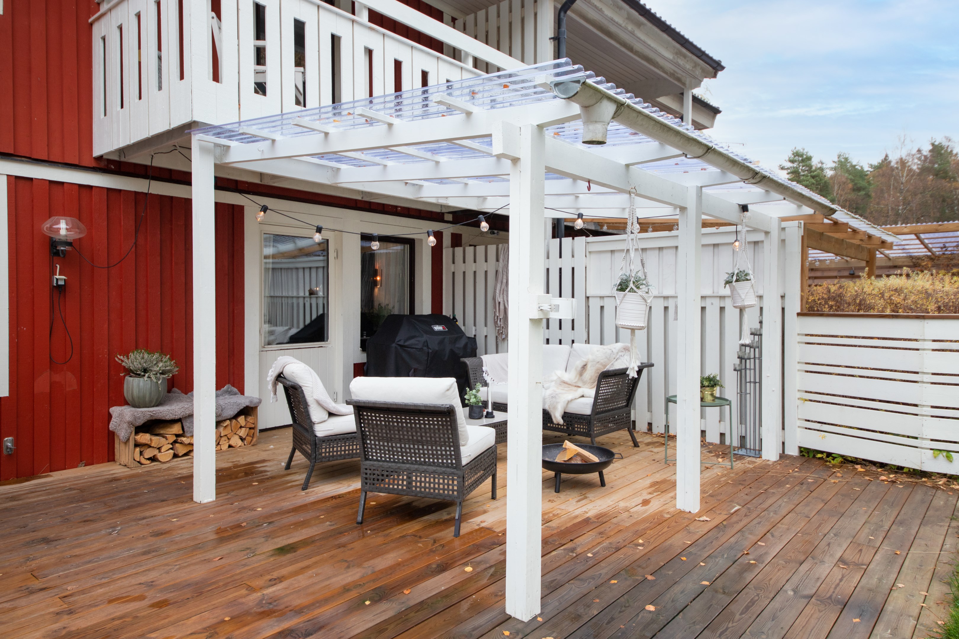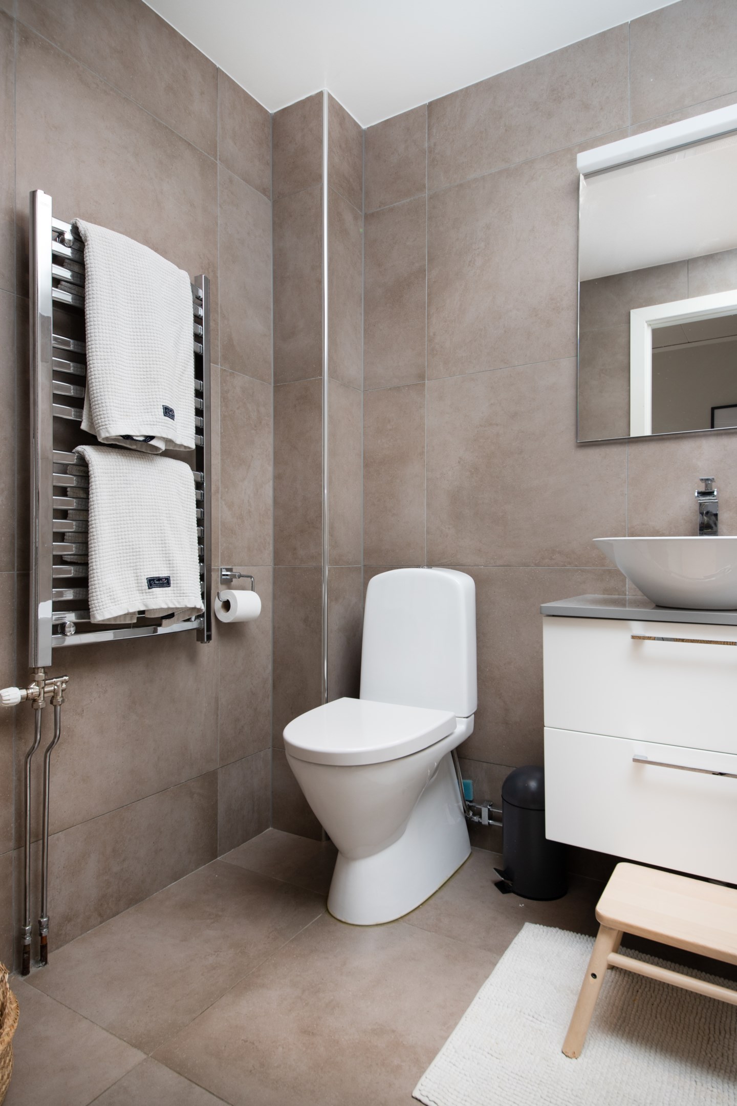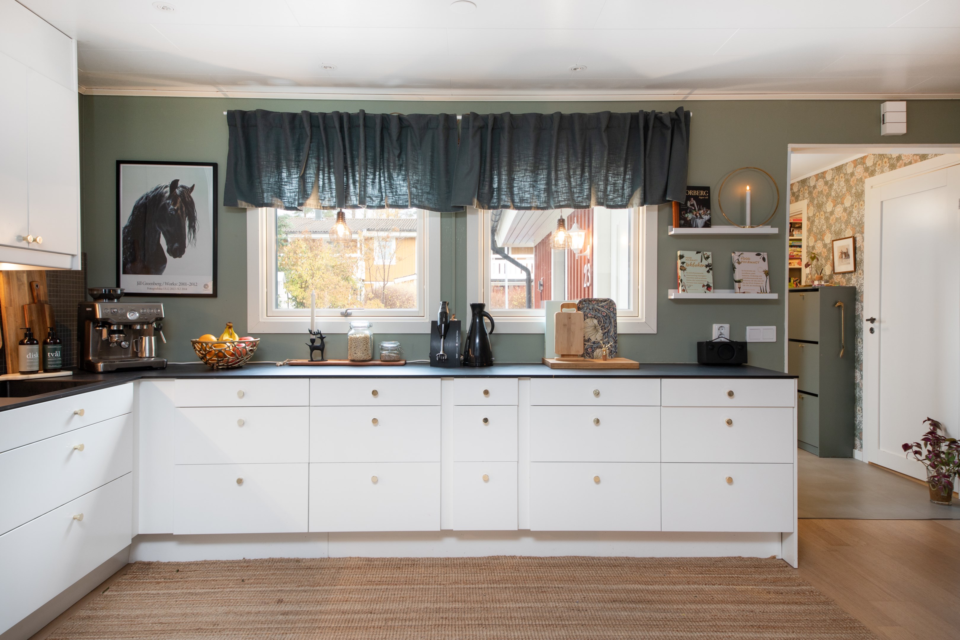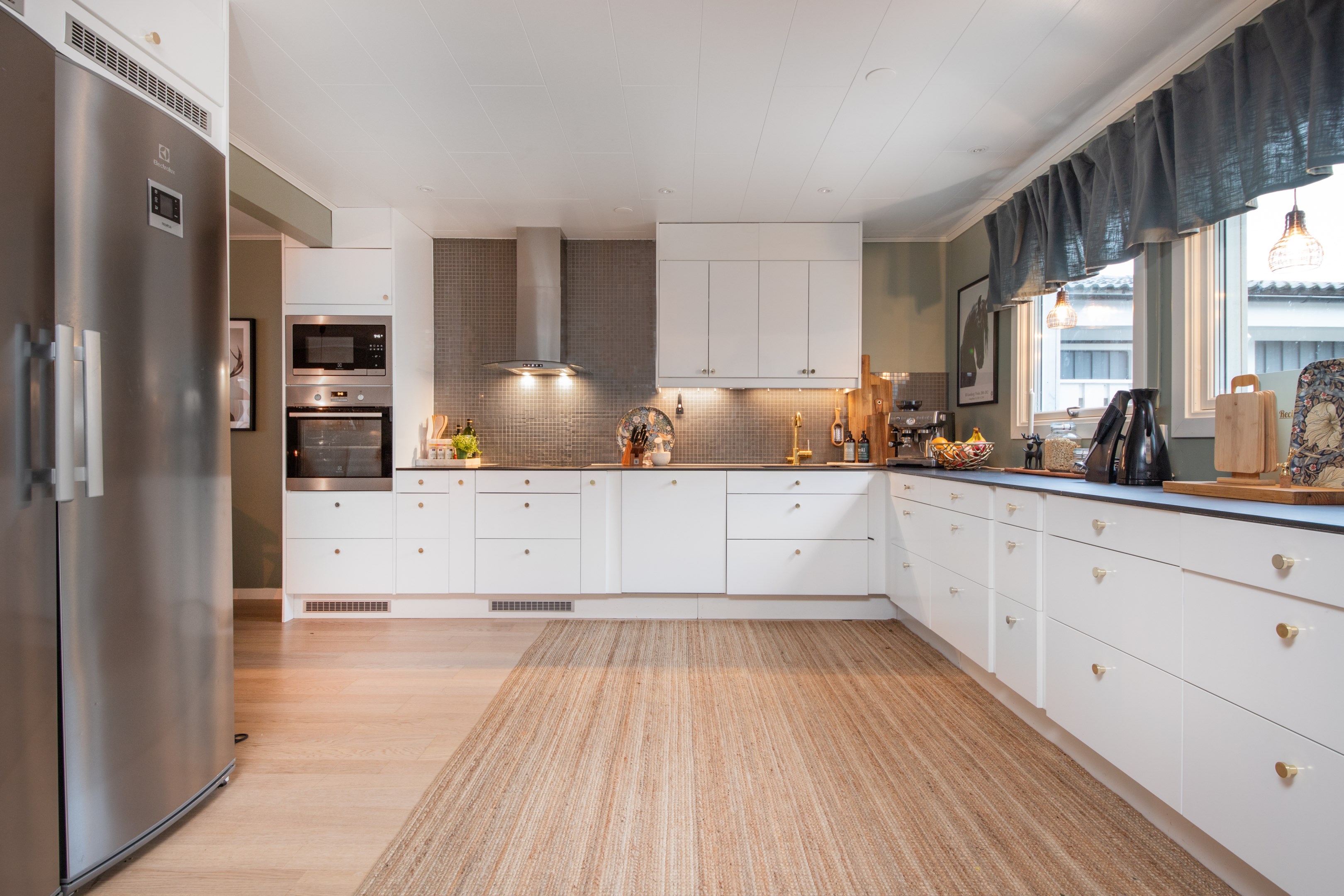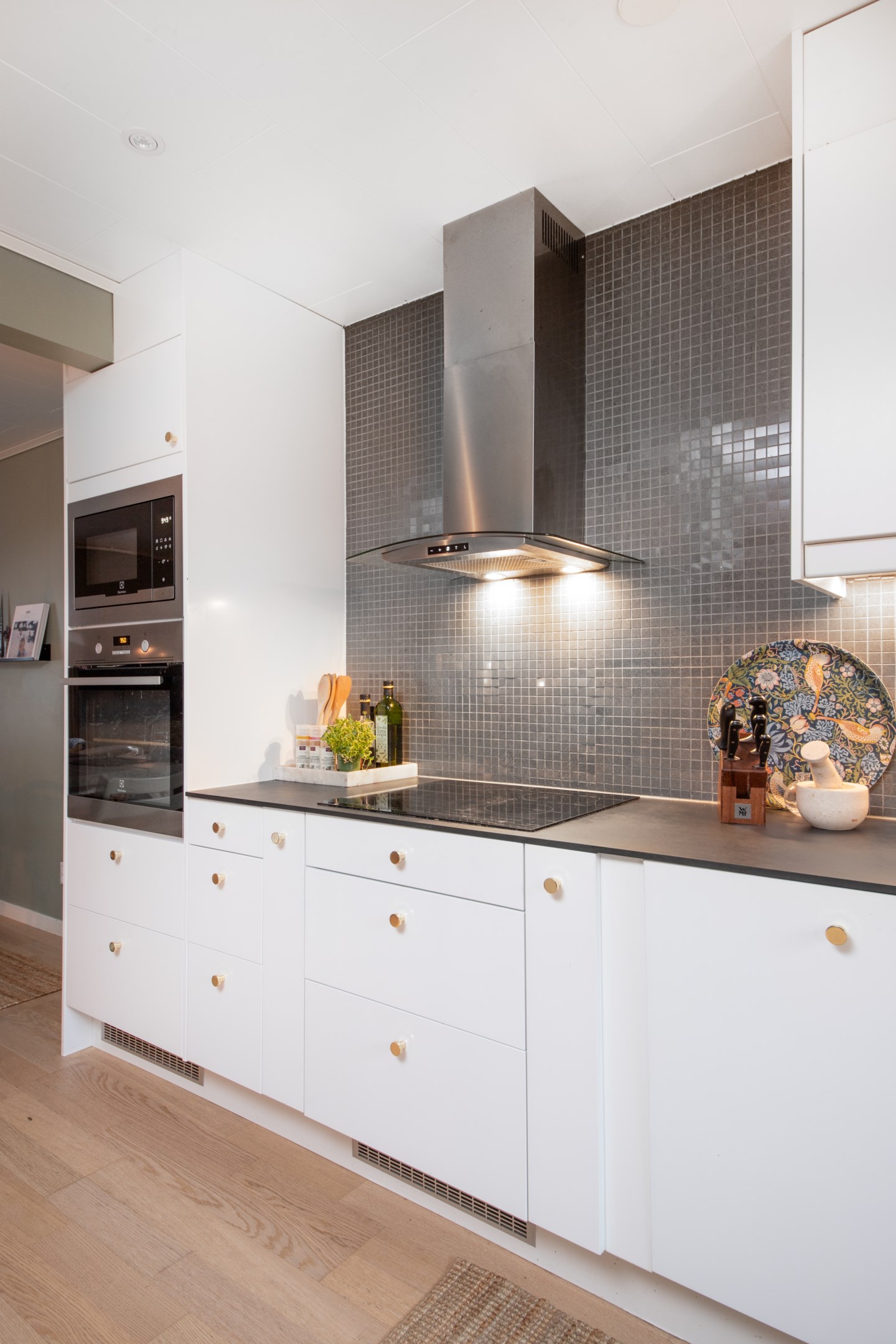 ENTRÉPLAN Entré in i hall med gott om plats för avhängning av ytterkläder. Här råder gott ljusinsläpp med både sidofönster och fönster i ytterdörren. Snyggt och praktiskt vinylgolv och tapetserade väggar. Klädkammare/förråd intill. I anslutning till hallen finns också den rymliga tvättstugan med groventré som är perfekt att använda som vardagsentré. Även här råder ett gott ljusinsläpp med både fönster vid arbetsbänken/tvätthon samt även fönster i ytterdörren. Här finns gott om arbetsytor och förvaringsmöjligheter. Ny kombinerad tvätt och torktumlare, det finns även en separat torktumlare. Värmepumpen finner ni också här. Målade väggar och praktisk plastmatta med klinkermönster på golvet. Renoverat och helkaklat badrum med ingång från hallen. Här finns dusch bakom glasväggar, handfatskommod, spegel samt wc. Renoverat och utbyggt kök. Öppen planlösning mot vardagsrum och matplats. I köket finns otroligt gott om både arbetsytor och förvaring. Nya fönster ovanför arbetsbänken. Vita köksluckor, svart bänkskiva, mässingsknoppar och mässingskran - allt i smakfull kombination. Mosaikkakel ovanför arbetsbänk. Köket är utrustat med kyl, frys, inbyggnadsugn, inbyggnadsmicro, spishäll och diskmaskin. Vardagsrum med gott om fönster och plats för både soffor och matbord. Här finns utgång till altan och baksida. ÖVRE PLAN Hall med målade väggar och tarkett-golv. Sovrum 1 har målade väggar och en fondvägg, likadant golv som i hallen. Sovrum 2 är riktigt stort och i anslutning till detta sovrum finns inredd klädkammare. Målade väggar och mysig heltäckande textil matta. Sovrum 3 med utgång till balkong. Målade väggar och likadant golv som i hallen. Smakfullt renoverat och helkaklat badrum. Här finns badkar, handfatskommod, spegel med belysning samt handdukstork. Golvvärme (el).