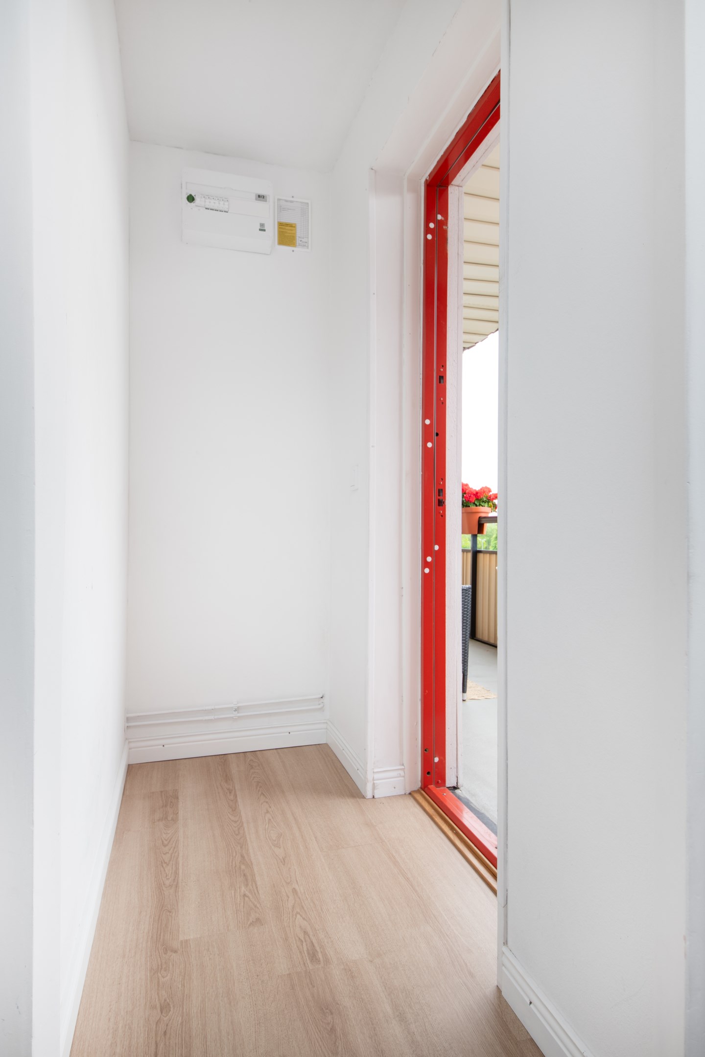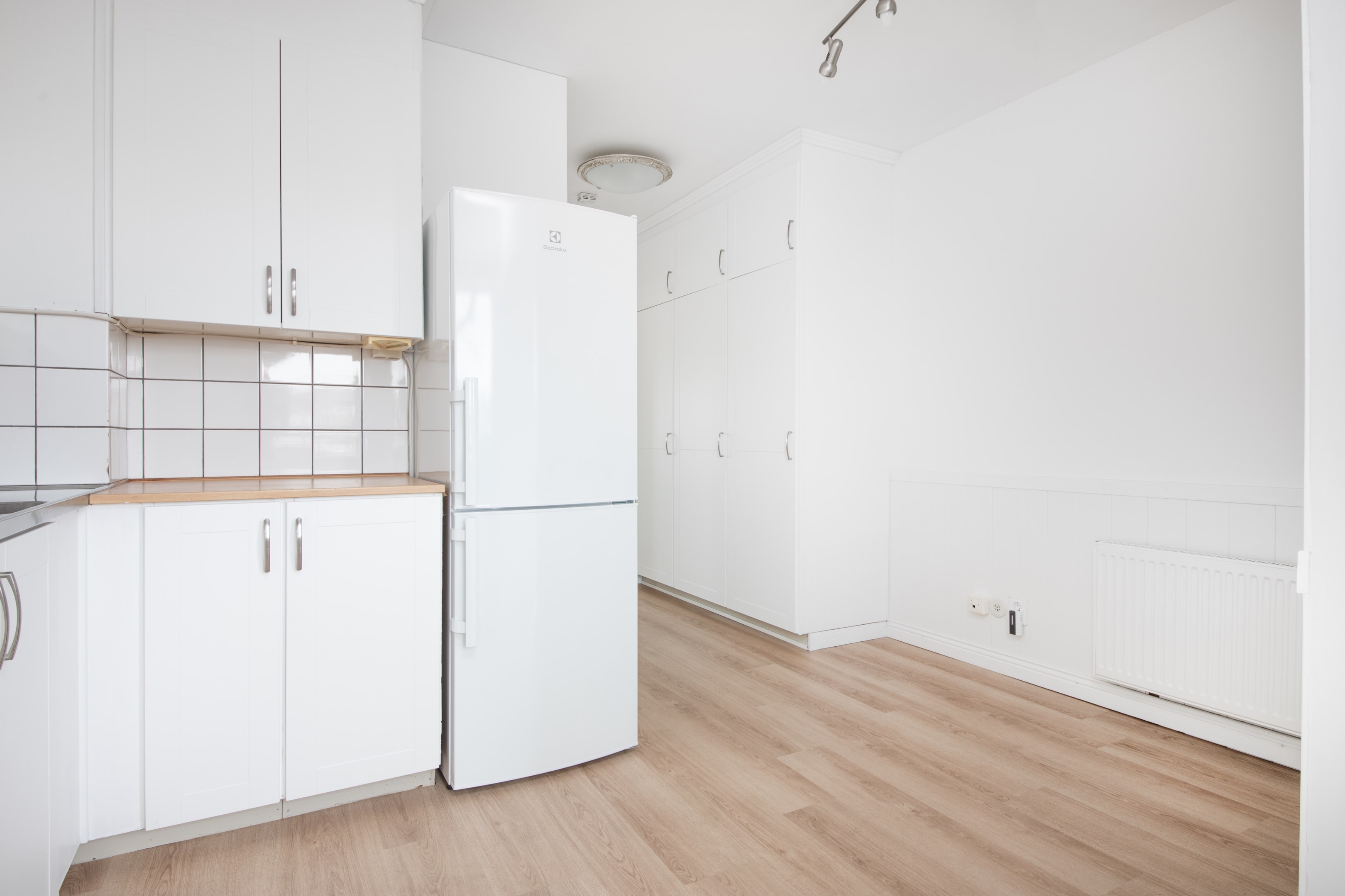 Entré in i hallen sker via loftgång. Hall med laminatgolv och ljusa väggar som är genomgående för hela lägenheten. Praktiskt och delvis renoverat kök med vita köksluckor (år 2021) och gott om arbetsytor. Köket är utrustat med kyl/frys (år 2021), spis (år 2021) samt fläkt. Plats för matbord framför fönster. Inre hall med gott om garderober. Rymligt vardagsrum med stort fönster parti som ger ett härligt ljusinsläpp. I anslutning till vardagsrummet finns sovrummet. Här finns utgång till den inglasade balkongen med utsikt mot innergården. Badrum med kaklade väggar och våtrumsmatta på golvet. Här finns nytt badkar och nyinstallerad takdusch. Utöver det finns också handfatskommod, spegelskåp och wc.