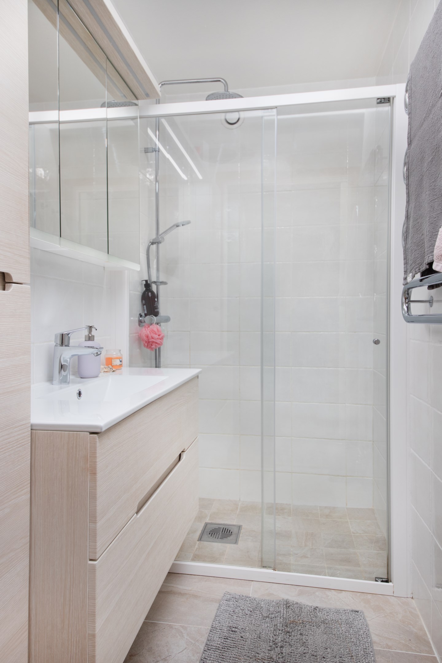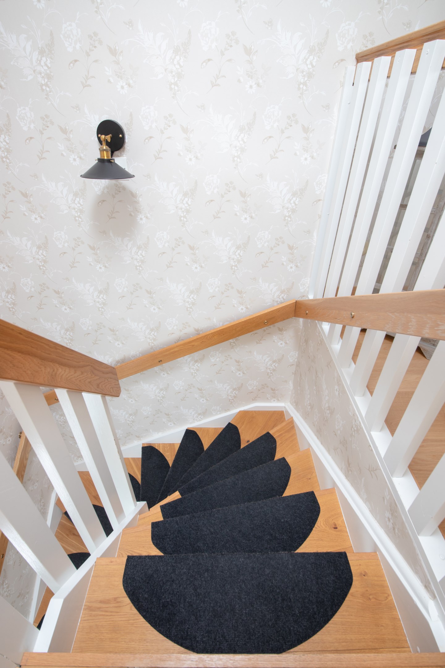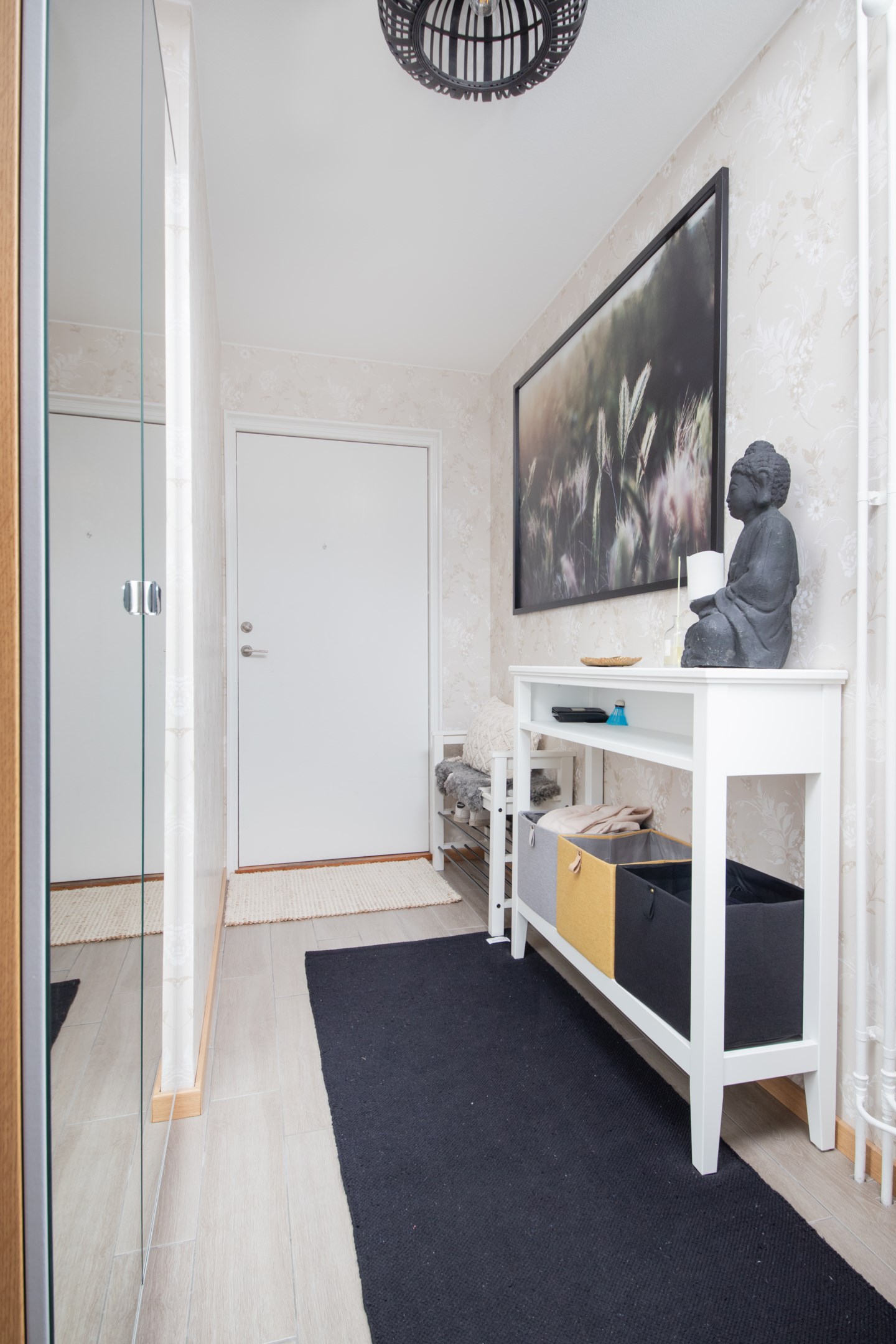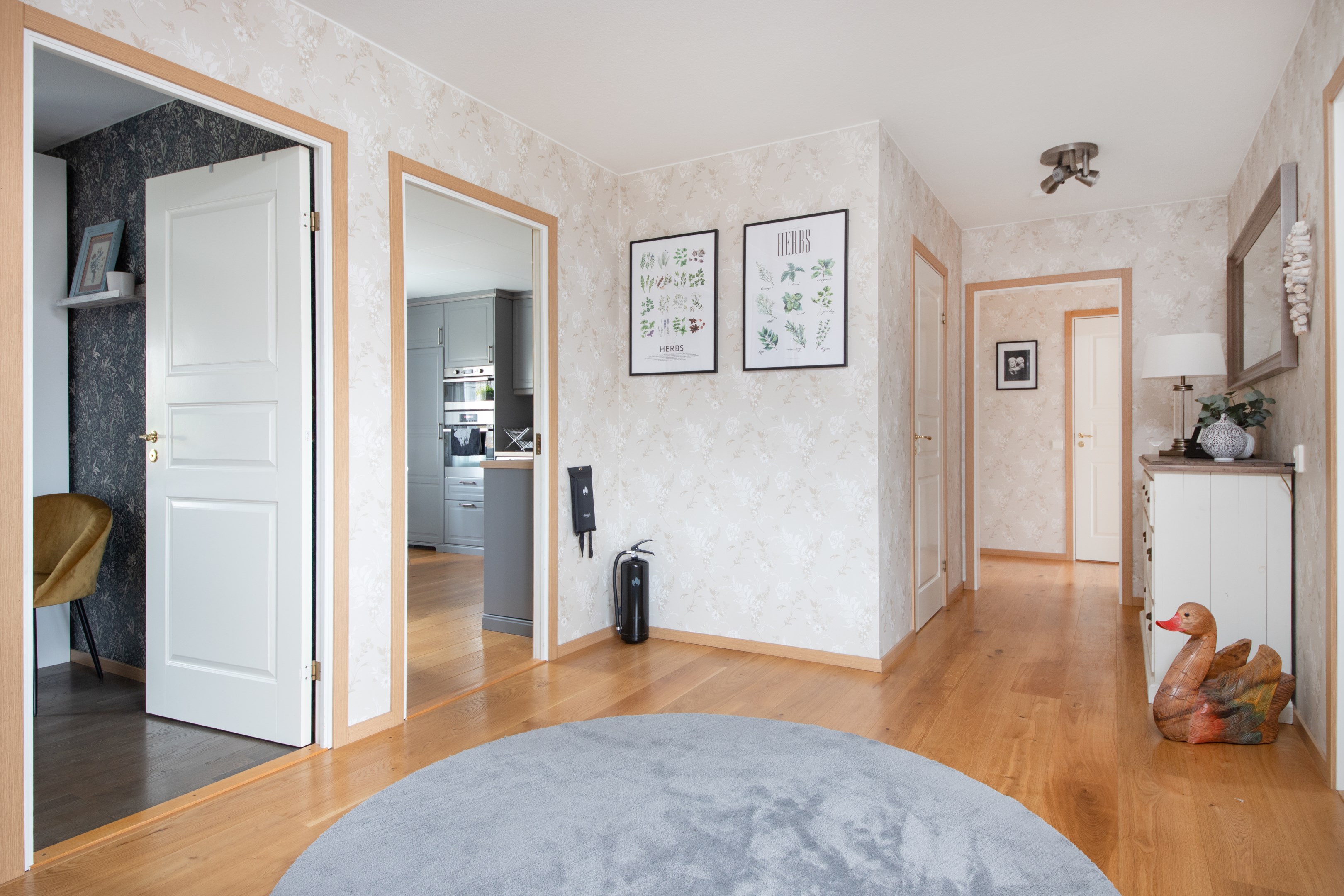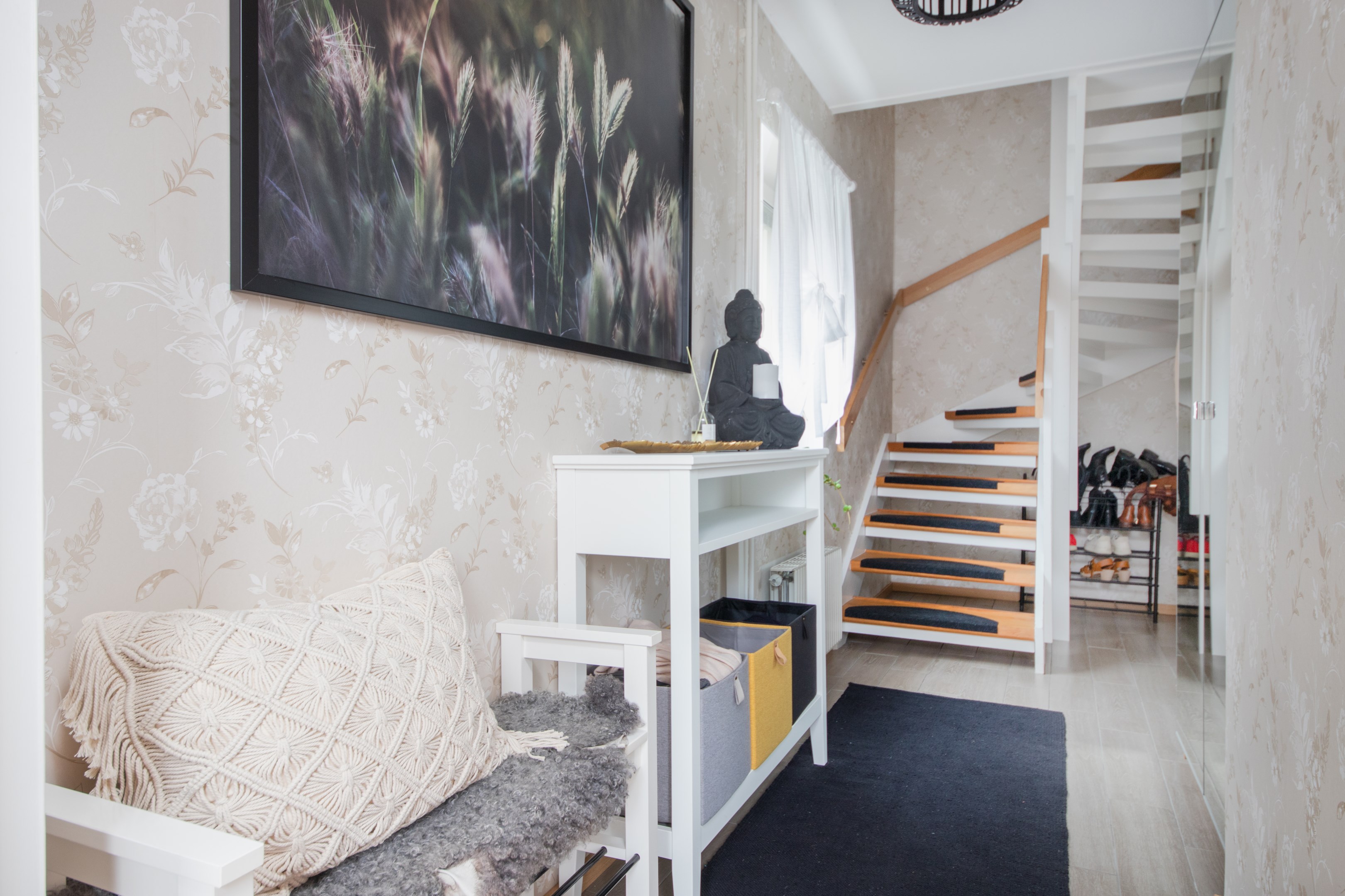 Egen entré och stor praktisk hall på markplan. Resten av lägenheten finner ni en trappa upp.