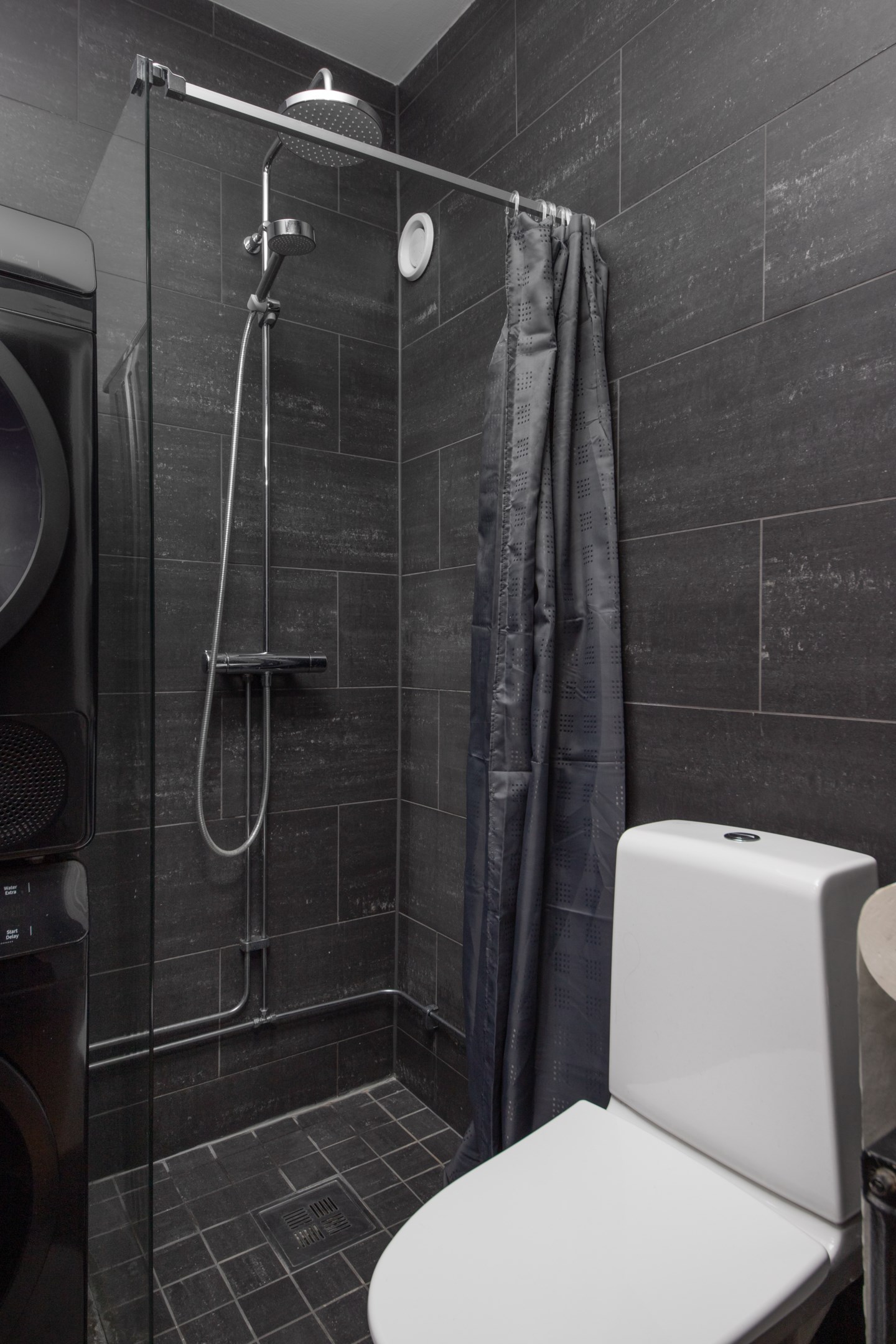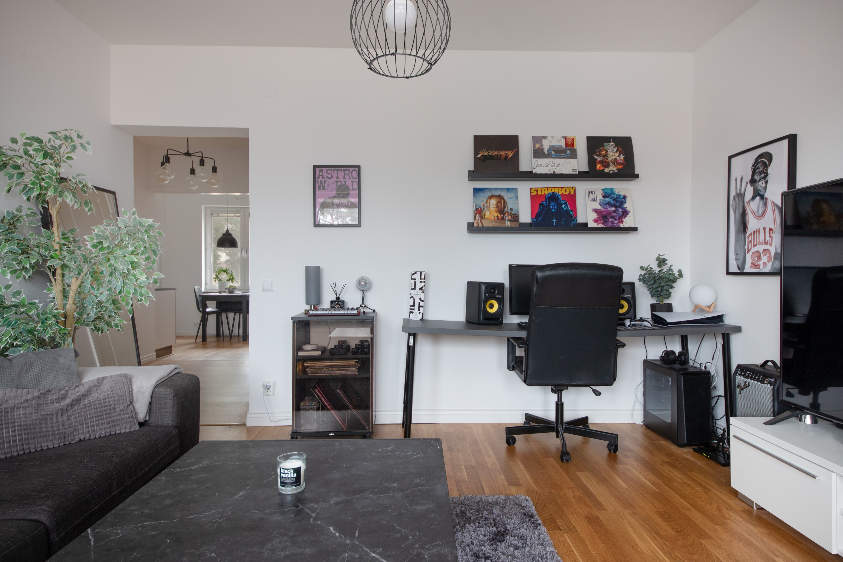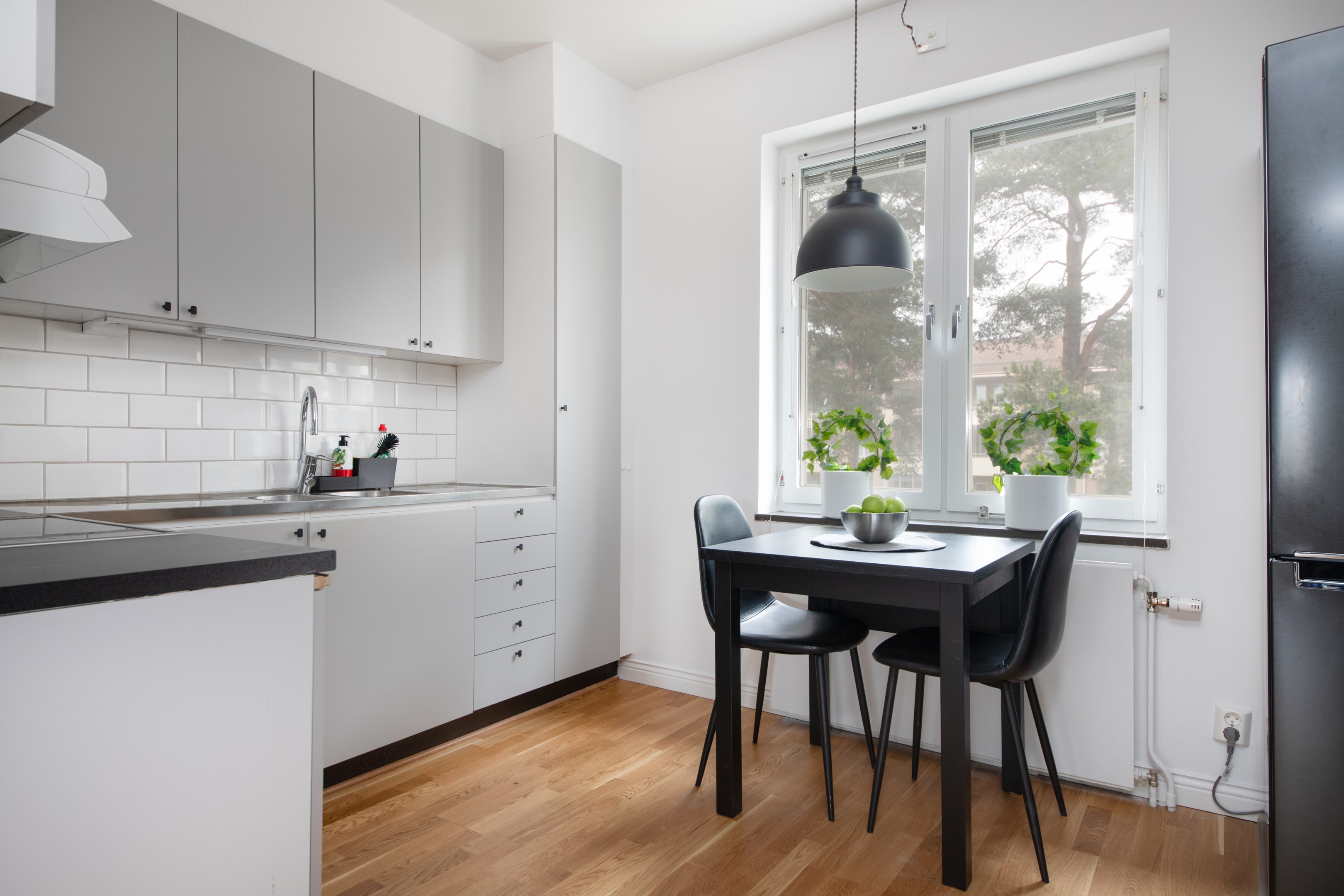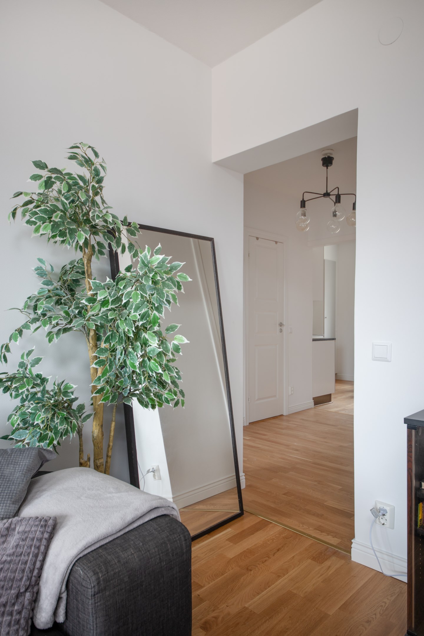 Entré in i hall med parkettgolv och ljusa väggar. Plats för avhängning av ytterkläder. Gott om förvaring med två praktiska klädkammare. Renoverat i helkaklat badrum i mörka rogivande nyanser. Här finns dusch, handfatskommod, spegel, wc samt både tvättmaskin och torktumlare. Rymligt kök med plats för matbord framför fönstret. Gott om arbetsytor i köket. Köket är utrustat med kyl/frys, spis samt fläkt. Stort vardagsrum med parkettgolv och ljusa väggar. Utgång till trivsam balkong i högt läge med härlig vy över området. Sovrum med parkettgolv, ljusa väggar och tre garderober.