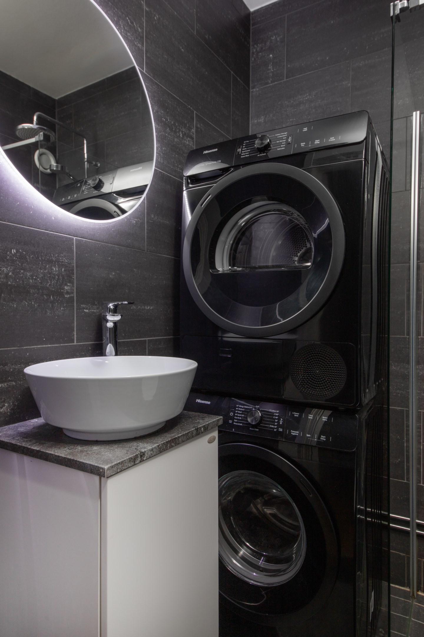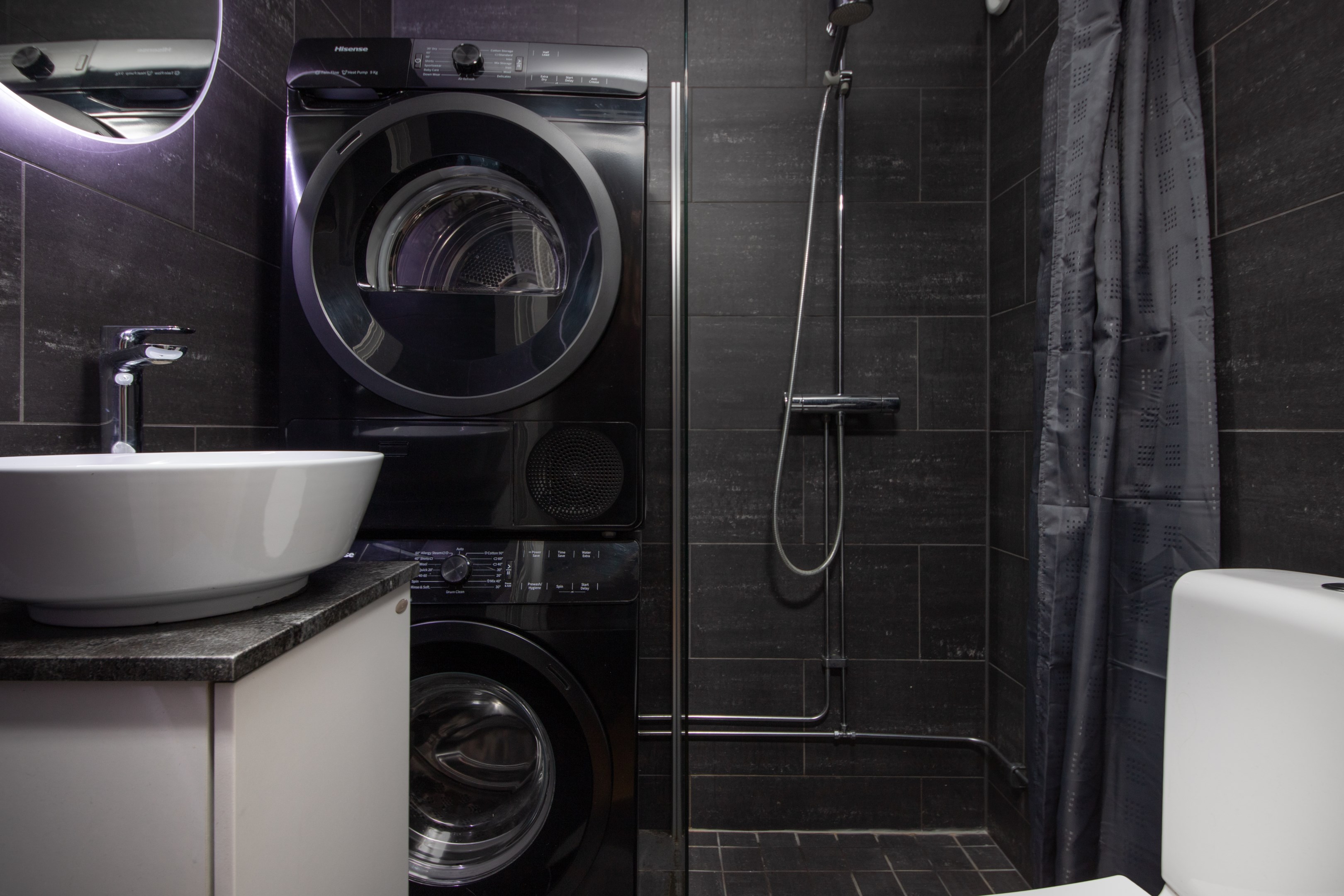 Gemensam tvättstuga finns i separat byggnad med ingång i markplan.